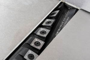 Кромка сегментов, расположенных по спирали, сделана скругленной (радиусной). Сами элементы выполнены из твердого сплава и имеют четыре рабочие стороны, что позволяет трижды переворачивать их до замены. К слову, замена (поворот) производятся выборочно только для поврежденных лезвий, что снижает расходы на эксплуатацию. При обновлении не требуется регулировка — ножи просто привинчиваются к своим местам.