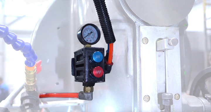 Для извлечения оправки, необходимо нажать на красную кнопку «OFF», после которого происходит выкручивание зажимной тяги и освобождение оправки от крепления.