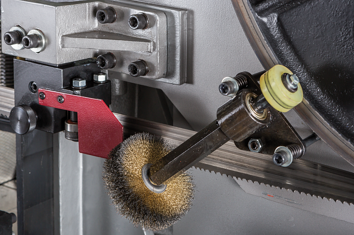 Представляем вашему вниманию полуавтоматический ленточнопильный станок HBS-2028DAS производства компании JET. Он предназначен для распила крупных деталей из стали, цветных металлов и различных сплавов. Станок найдет применение на предприятиях, нуждающихся в пилении крупноразмерных заготовок и выпускающих продукцию в промышленных объемах. Безусловное преимущество этого станка – возможность увеличения скорости работы за счет резки сразу нескольких заготовок. Для этого HBS-2028DAS оборудован гидравлическим прижимом, максимальные габариты пакета - 200-400 x 75-275 мм. Зона обработки у данной модели будет оптимальна для большинства заказчиков, она составляет Ø510 мм, □510 мм □720 х 510 мм (при пилении под углом 90º), размеры ленточного полотна 41х1,3 х 5840 мм (М42). В зависимости от материала, скорость его движения можно плавно выбирать из диапазона 20-100 м/мин, текущее значение выводится на дисплей. Полотно приводится в движение мощным электродвигателем 5,6 кВт, рассчитанного на подключение к сети 400 В. HBS-2028DAS оборудован гидравлической системой натяжки полотна, датчиком его обрыва и корд-щекоткой для очистки полотна от продуктов обработки. Для надежной фиксации заготовки применяются гидравлические тиски, зона резки оборудована системой подачи СОЖ и локальной подсветкой. Станок поставляется полностью укомплектованным, провести пусконаладочные работы и ввести его в эксплуатацию не займет много времени.