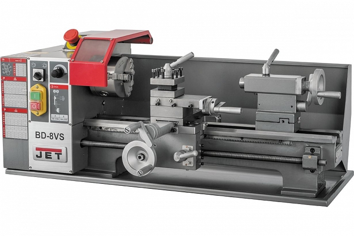 Особенности:Станок JET BD-8VS – относится к классу настольных токарных станков. Станок поставляется с поддоном для сбора стружки и через поддон прикручивается к тумбе или верстаку. Несмотря на свои маленькие габариты станок способен обрабатывать заготовку диаметром до 210 мм над станиной, а если точить над суппортом, то этот диаметр уменьшается до 135 мм. При этом максимальная длина обработки (РМЦ) составляет внушительные 400 мм.