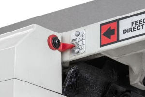Глубина строгания регулируется передним столом до 3 мм, что позволяет точно контролировать съём материала.