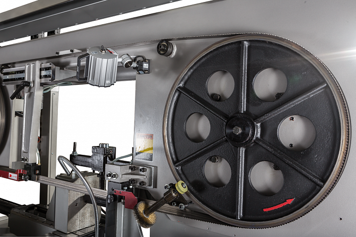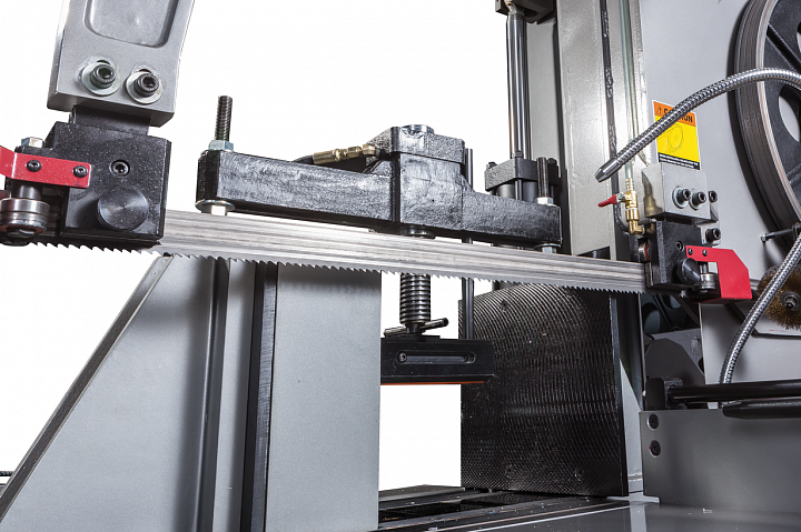 Представляем вашему вниманию полуавтоматический ленточнопильный станок HBS-2028DAS производства компании JET. Он предназначен для распила крупных деталей из стали, цветных металлов и различных сплавов. Станок найдет применение на предприятиях, нуждающихся в пилении крупноразмерных заготовок и выпускающих продукцию в промышленных объемах. Безусловное преимущество этого станка – возможность увеличения скорости работы за счет резки сразу нескольких заготовок. Для этого HBS-2028DAS оборудован гидравлическим прижимом, максимальные габариты пакета - 200-400 x 75-275 мм. Зона обработки у данной модели будет оптимальна для большинства заказчиков, она составляет Ø510 мм, □510 мм □720 х 510 мм (при пилении под углом 90º), размеры ленточного полотна 41х1,3 х 5840 мм (М42). В зависимости от материала, скорость его движения можно плавно выбирать из диапазона 20-100 м/мин, текущее значение выводится на дисплей. Полотно приводится в движение мощным электродвигателем 5,6 кВт, рассчитанного на подключение к сети 400 В. HBS-2028DAS оборудован гидравлической системой натяжки полотна, датчиком его обрыва и корд-щекоткой для очистки полотна от продуктов обработки. Для надежной фиксации заготовки применяются гидравлические тиски, зона резки оборудована системой подачи СОЖ и локальной подсветкой. Станок поставляется полностью укомплектованным, провести пусконаладочные работы и ввести его в эксплуатацию не займет много времени.