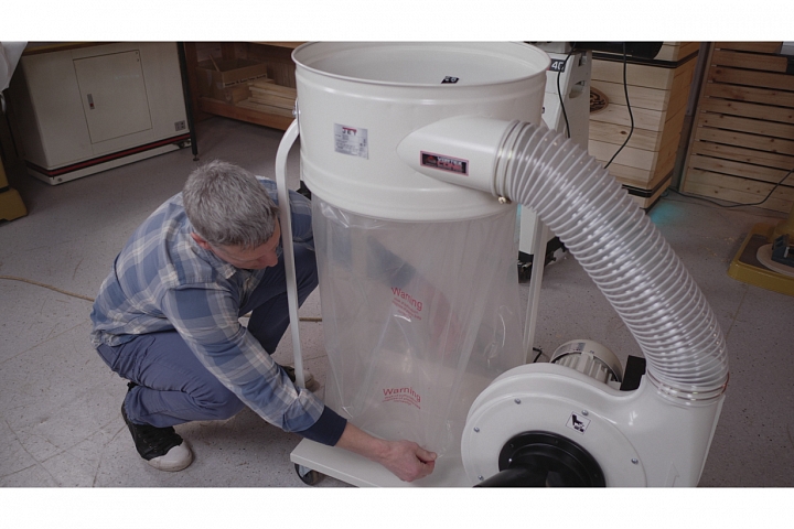 Модификация DC-1100A поставляется с обычным матерчатым фильтром 30 мкм, что делает её оптимальной для работы со станками, производящими много мусора крупной фракции: фуговальными, рейсмусовыми и фрезерными. В сочетании с оборудованием для шлифования и пиления рекомендована замена фильтра на «двухмикронный», он поставляется отдельно в качестве опции (арт. 708739М).